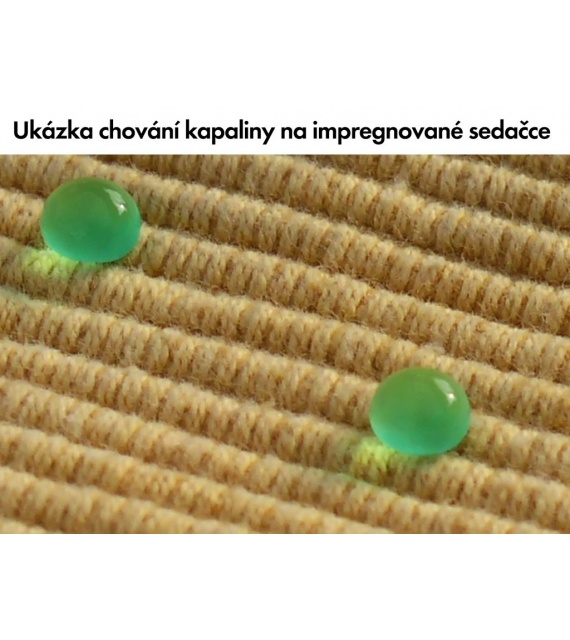 Díky extrémně odpuzujícímu efektu nano impregnace zabraňuje vniknutí vlhkosti, skvrnám od kávy, červeného vína, mastnotě - jednoduše všem nečistotám. Navíc čištění naimpregnového materiálu nebylo nikdy snadnější - pouze hadřík a voda!