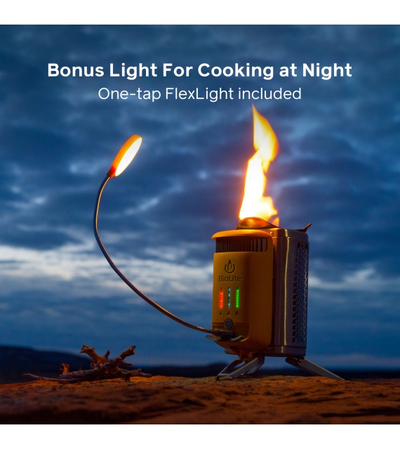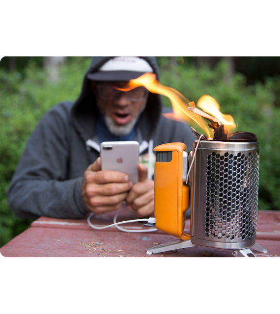 Proměňte oheň v elektřinu s oceněným vařičem BioLite. Patentovaná technologie spalování vytváří vír bezdýmných plamenů pro přenosný táborák, který dokáže vařit vaše jídlo a nabíjet vaše vybavení, to vše současně. Nechte plynové kartuše za sebou a odemkněte potenciál klacíků, šišek a větviček kolem vás.