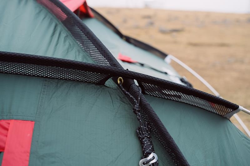 A puha, légáteresztő, mégis erős anyag, amelyből a belső hálós szúnyogháló készül, lehetővé teszi a levegő jobb áramlását a sátorban. Ez biztosítja a minőségi szellőzést.