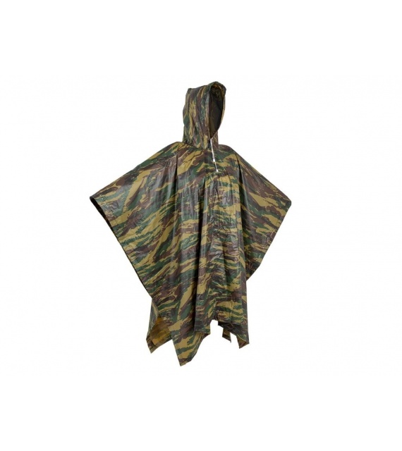 Könnyű poncsó terepmintás mintával, kapucnival és nyak körüli összehúzóval. Oldalt patentos, így könnyen a fej fölé húzható. A poncsó alá egy kisebb hátizsák is elfér. 100%-ban vízálló anyag, elektronikusan hegesztett varratokkal. Univerzális méret.