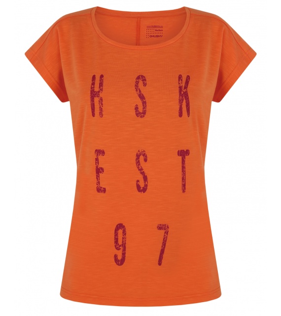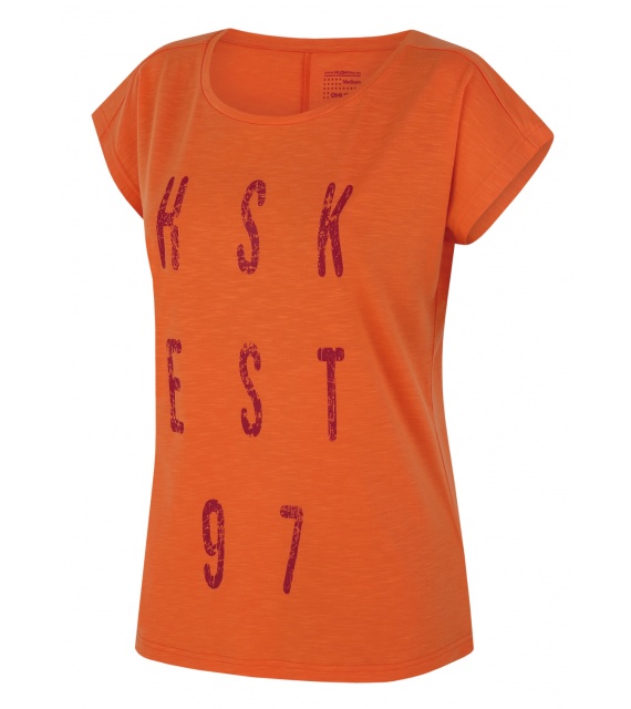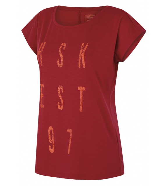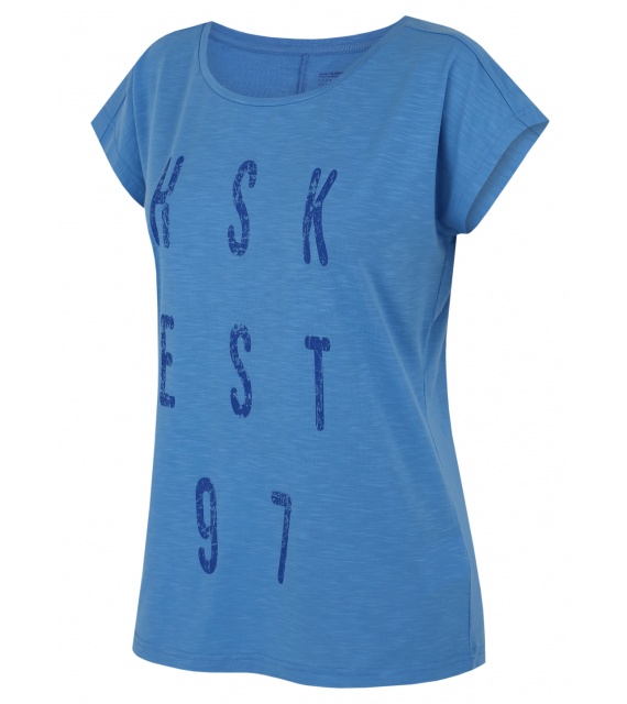 Funkcionális nõi póló Tingl L stílusos nyomattal és rövid ujjú kialakítással, ideális sporthoz és minden teljesítményorientált outdoor tevékenységhez. Kiváló minõségû anyagból készült, amely hûsítõ hatással rendelkezik, segít szabályozni a testhõmérsékletet és megakadályozza a túlmelegedést.