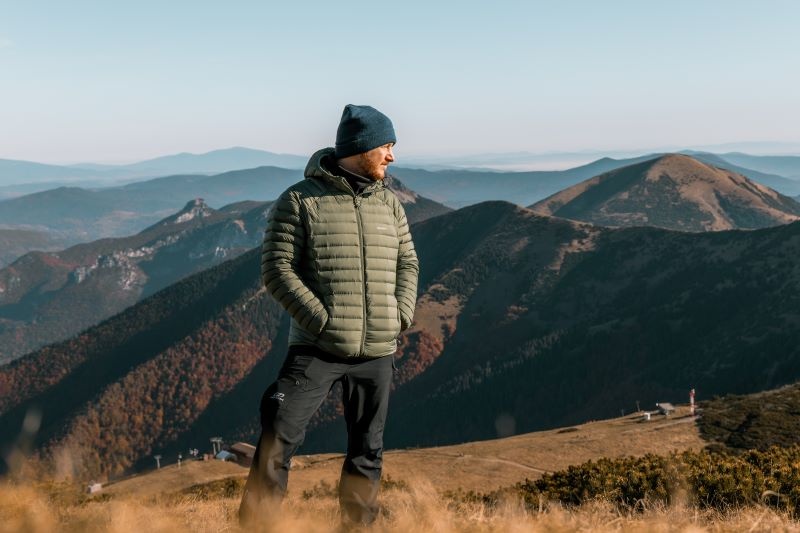 Könnyű férfi pehelydzseki mindennapi viseletre, városban és a természetben egyaránt.