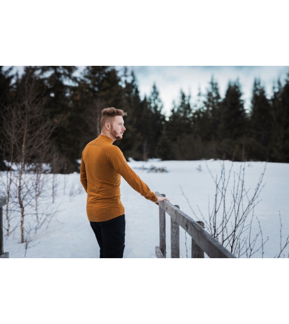 100% merinó gyapjúból készült hosszú ujjú férfi póló antibakteriális tulajdonságokkal, amely egész évben ideális különféle outdoor tevékenységekhez.