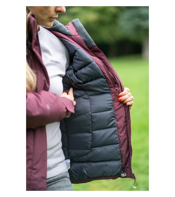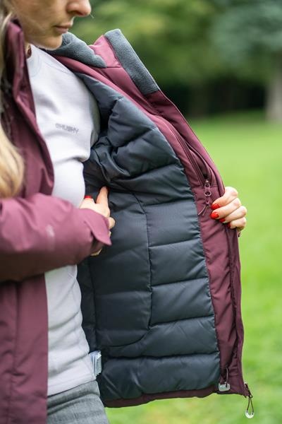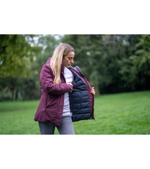 Kényelmes női kabát vízálló membránnal különféle szabadtéri tevékenységekhez városban és a természetben egyaránt.