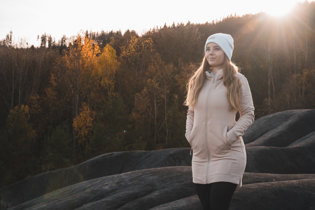 Meleg, hosszított szabású női pulóver egész évben különféle szabadidős és sporttevékenységekhez.