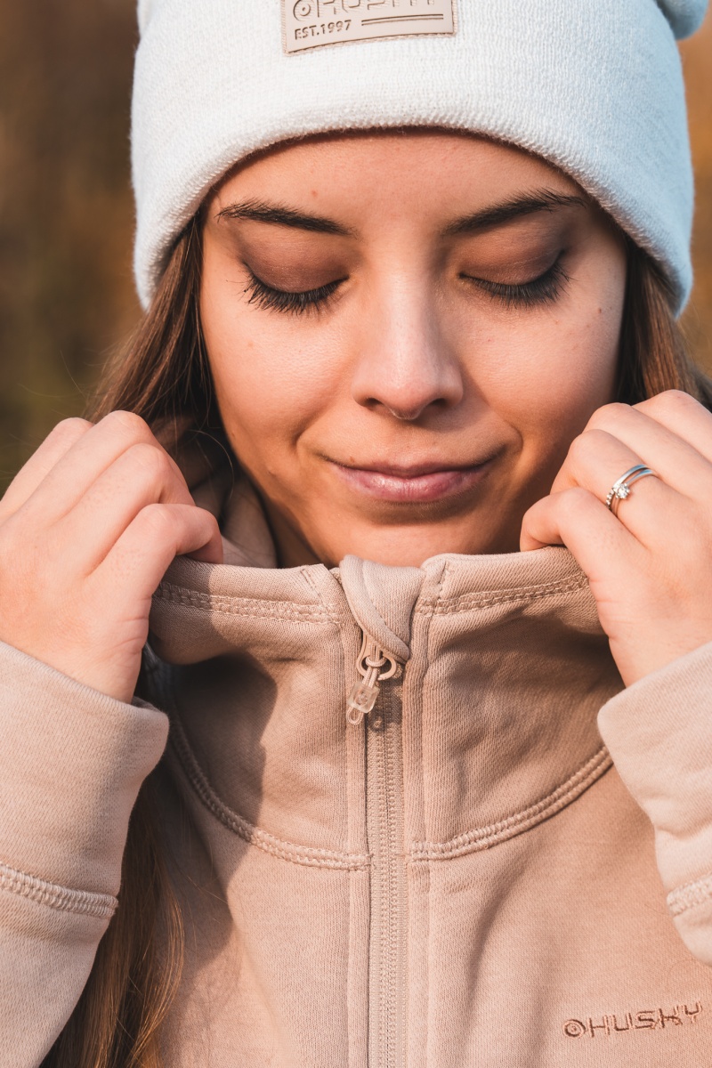 Aroldin L női kapucnis pulóver melegen tart a hidegebb napokon is. Kényelmes, pamut anyagból készült, amely a test melegét tartja, és nem korlátoz a mozgásban.
