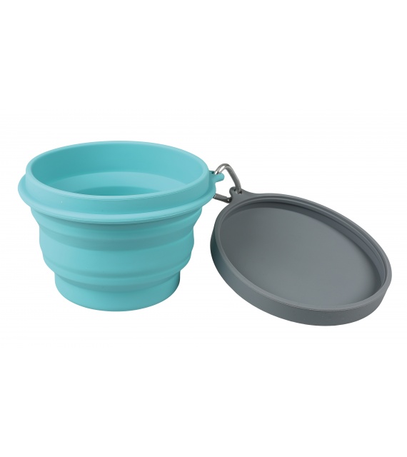 Összecsukható Twisty szilikon tál fedéllel, amely tökéletes választás a természetjáráshoz, táborozáshoz és más outdoor tevékenységekhez.