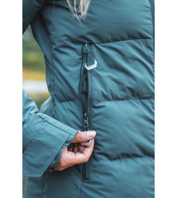 Egy remek meleg darab hosszított hátrésszel és sok más praktikus részlettel, amelyek segítenek elviselni a hideget. A téli, bélelt nõi kapucnis kabát Norel L vízálló Huskytech membránnal van ellátva. Viseld mindennapi városi használatra vagy kirándulásokhoz a természetben.