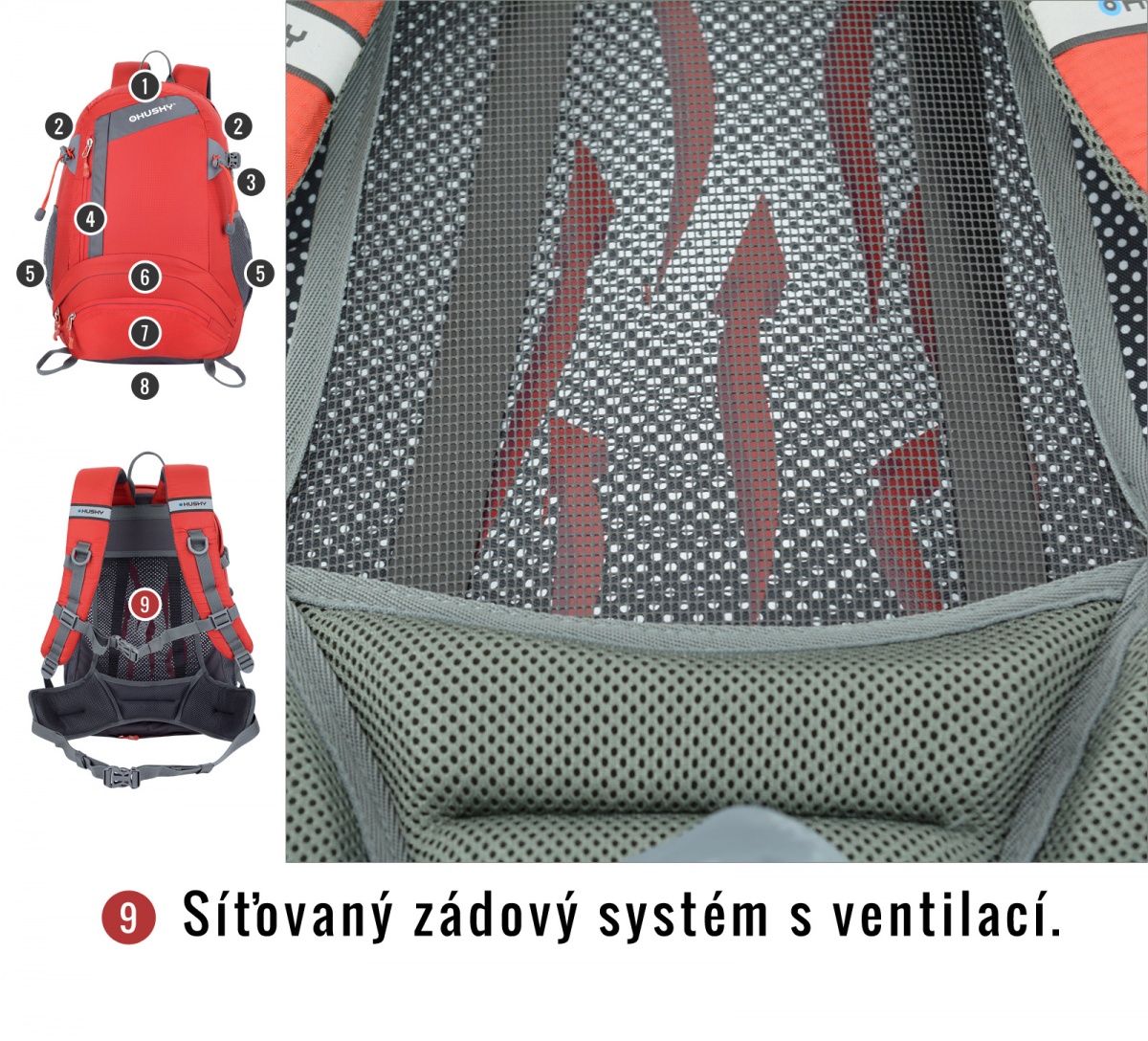 Hálós hátrendszer, amely felépítésében egyedülálló. Két dural merevítés rögzíti, amelyek a hátadhoz simuló hálótól távol tartják a hátizsák testét. Ez egy köztes teret hoz létre, ahol a levegő szabadon áramolhat a hátad és a hátizsák között. Emellett ez a rendszer kiválóan alkalmazkodik a formához.