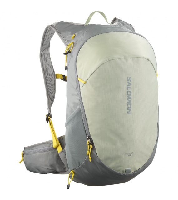 Egyszerű dizájn, könnyű súly és maximális kényelem viselés közben – ezt nyújtja a Salomon Trailblazer 20 hátizsák. 20 literes űrtartalmának köszönhetően mindennapi szabadtéri tevékenységekhez és a város körül is használható. A hátizsák minimalista kialakítású, letisztult vonalakkal, minőségi anyagokból készült és tökéletesen illeszkedik. Belül egy számítógép (van egy speciális zseb) és egy hidratáló hólyag számára elegendő hely. A hátizsákban sok kisebb zseb is található a kisebb tárgyak és apró tárgyak tárolására. A széles alsó öv állítható elülső zárással, valamint a rugalmas mellkasi öv, a széles, megerősített vállpántok és a hátizsák hátulja kényelmesebbé teszik a viseletet. A hátizsák továbbá rendelkezik túrabot-rögzítő hurokkal és egy fényvisszaverő hurokkal villogó lámpa számára.